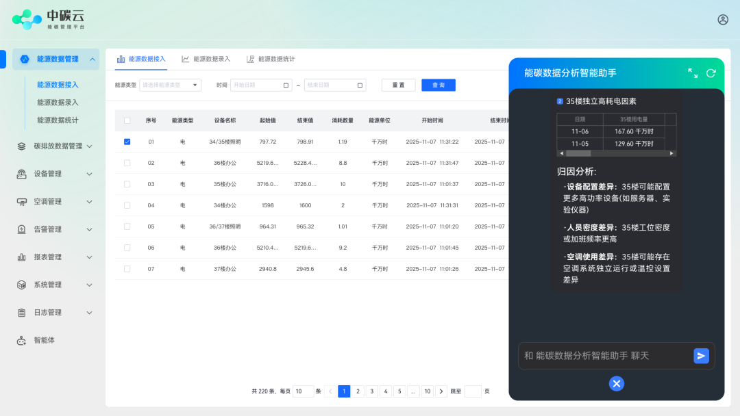 日常管理“轻装上阵”。员工随口问"今日3号车间碳排是否超阈值",系统秒回实时数据+异常预警;工作流自动监控用能波动,知识库同步推送优化建议,让管理从"人盯数据"变为"数据主动服务人"。