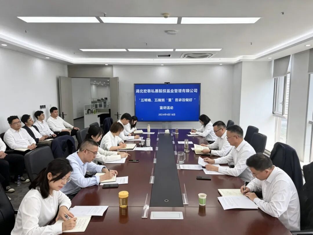 2026年4月18日下午,宏泰基金召开“五明确、五做到”暨“吾讲吾做好”专题分享会。公司领导班子成员、各部门负责人及投资条线全体员工参会。会议由公司副总经理张水清主持。